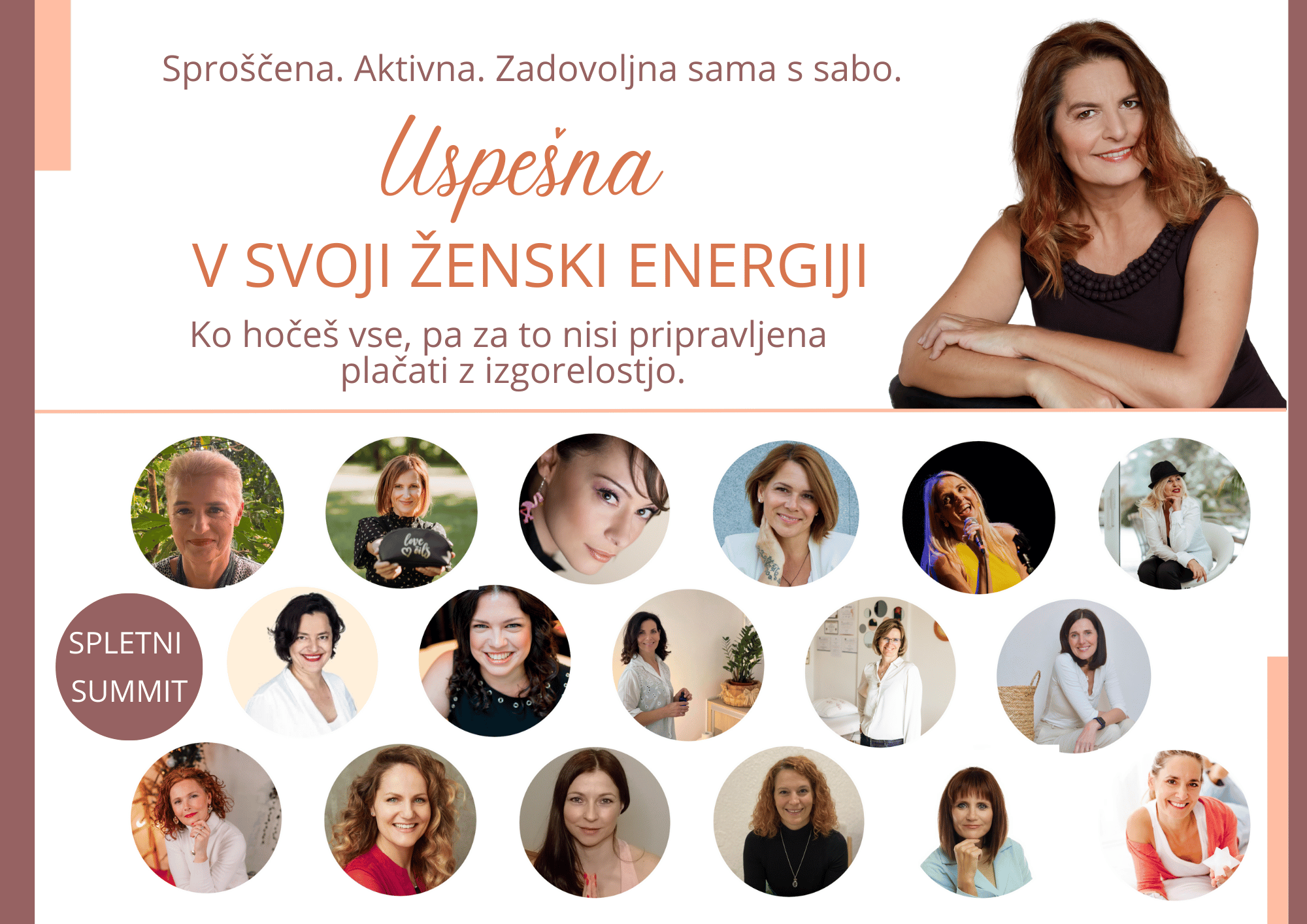 Pozdravljena, ti moram kar napisati, da sem navdušena nad tvojim summitom "Uspešna v svoji ženski energiji". Res si vrhunsko zastavila in sploh ne dvomim, da se za tem skriva ogromno poguma, predanosti in srčnosti. Izbrala si res zanimive ženske ter zelo raznolika področja in se že sedaj veselim novih spoznanj. Veliko uspeha in zadovoljstva ti želim na tvoji novi poti. Lep večer in čudovito praznovanje uspešnega dogodka