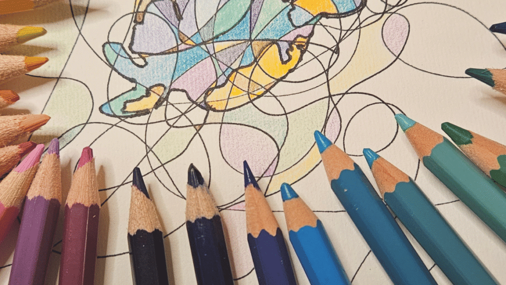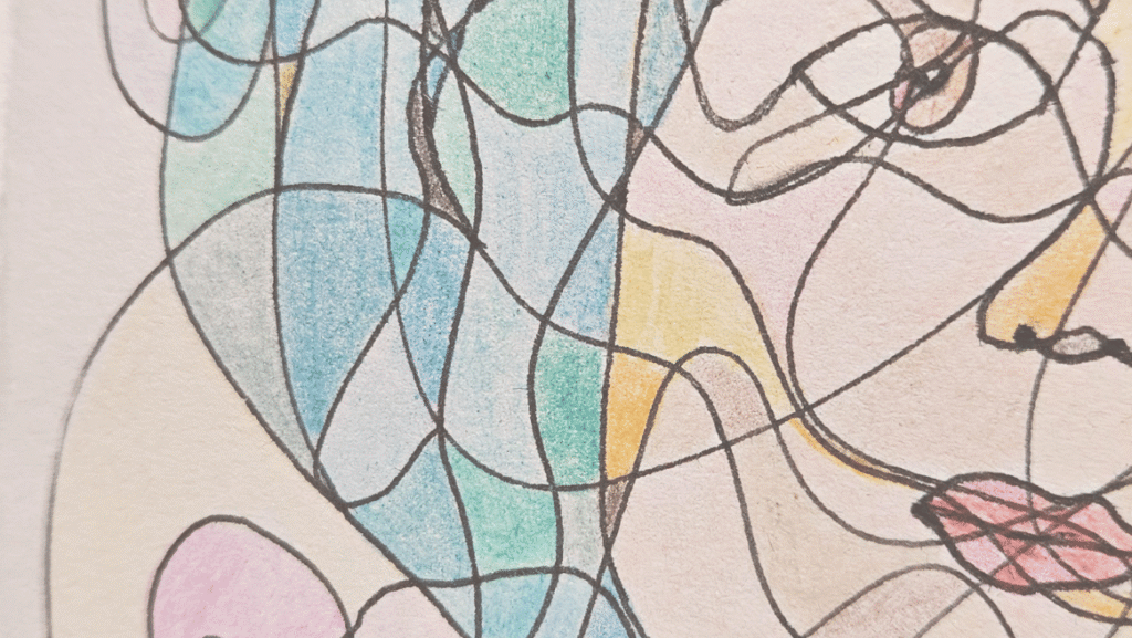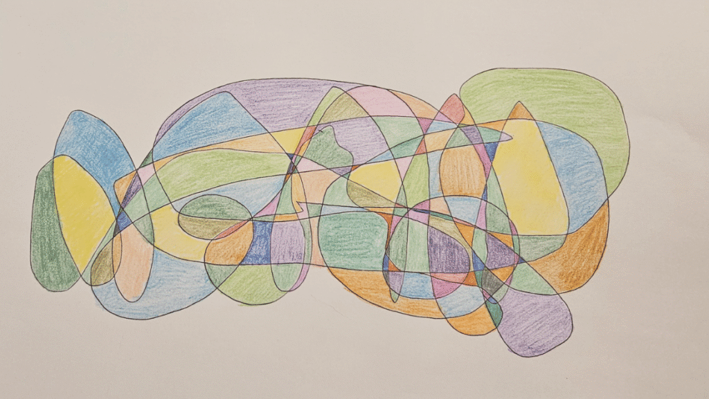 Na fraktalnem srečanju z Majo sva ustvarjali risbi – tiho, v miru. Ko je želela zaključiti, sem jo povabila, da nadaljuje.
